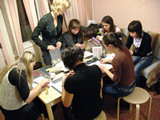 Все влюбленные девы и романтичные леди озадачены поиском подарка для своих любимых. Впрочем, те из них, кто побывал на новогоднем мастер-классе по квиллингу от Ольги Луллис в хендмейд-мастерской «Полосатая клумба», скорее всего, загадочно улыбаются и в общей суматохе не участвуют. Это удивительное искусство бумагокручения уже прочно заняло свое место в сердцах рукодельниц. Они теперь прекрасно знают, как при помощи тонкой бумажки и зубочистки сделать открытку, картину или объемную композицию. Можно даже последовать примеру родоначальниц этого искусства – монахинь средневековой Европы, которые создавали медальоны, закручивая на кончике птичьего пера бумажные полоски с позолоченными краями, что создавало имитацию золотой миниатюры.