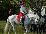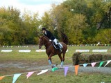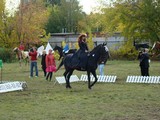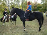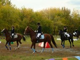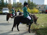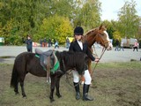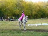 После «танцев» девушки переоделись в традиционные жокейские костюмы – бриджи и курточки. Начались состязания по самому популярному виду конного спорта – конкуру. Всадник с лошадью должны были пройти маршрут, преодолевая установленные на нем препятствия. Сначала «прыгали» совсем юные наездницы на пони, затем леди постарше, на «больших» лошадях.